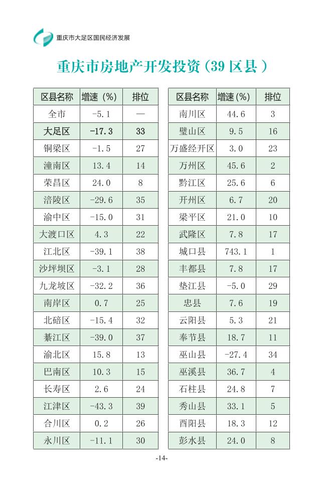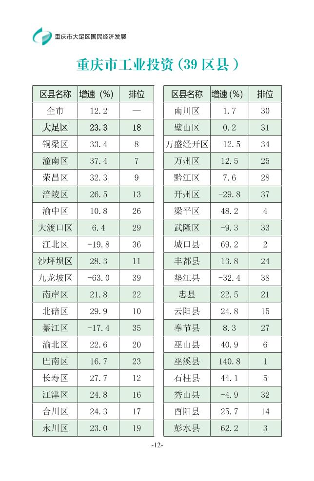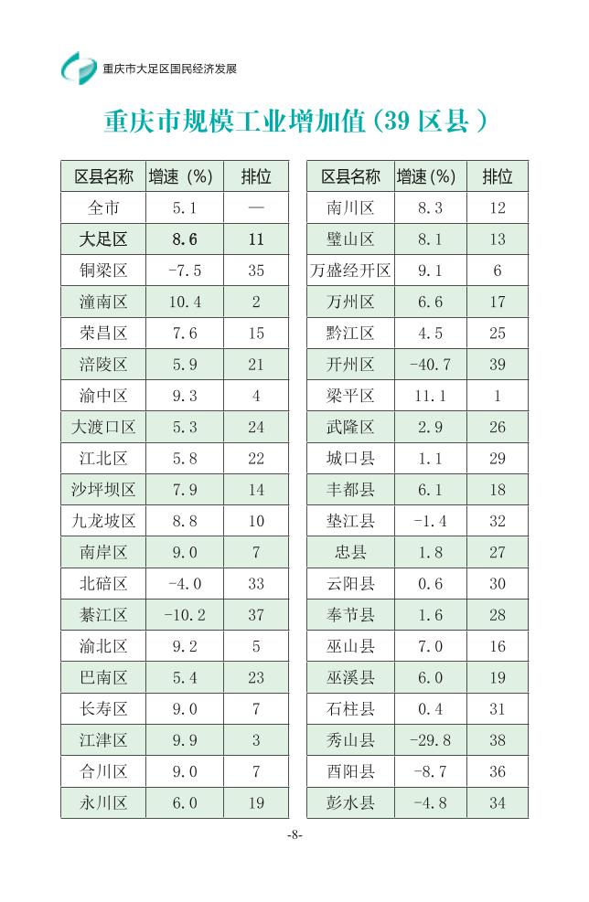| [ 發布機構 ] | 大足區統計局 |