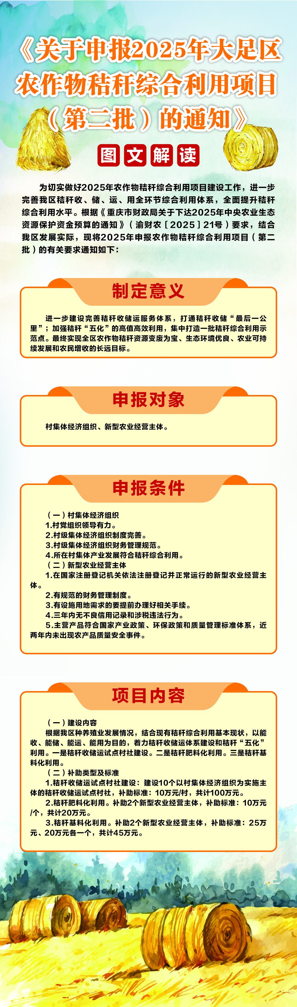 《關(guān)于申報2025年大足區(qū)農(nóng)作物秸稈綜合利用項目(第二批)的通知》(圖文解讀)