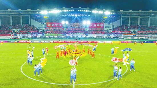 在梁平,一群足球愛好者用一部時長4分33秒的微電影致敬足球;在彭水,舞龍、舞獅、玩牛等富有地方特色的非遺展示輪番登場;充滿巴渝特色的秀山花燈、銅梁龍舞也在賽場頻頻亮相……